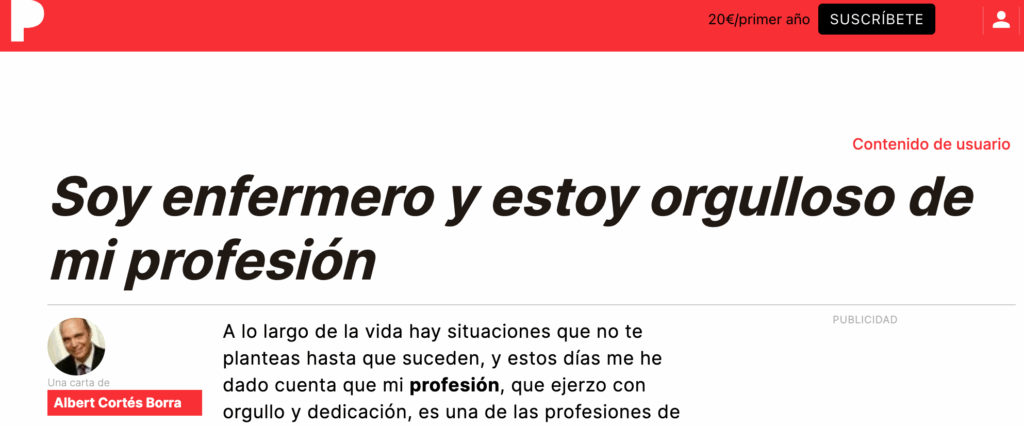 En estos días he visto el verdadero valor de la profesión que llevo ejerciendo desde hace más de 30 años y me he sentido orgulloso de mis compañeras, que me han hecho convertirme en mejor enfermero. Gracias a todas ellas por mostrarme este camino de mejora continua, por el beneficio de nuestros pacientes, que en este caso ha sido también el mío.